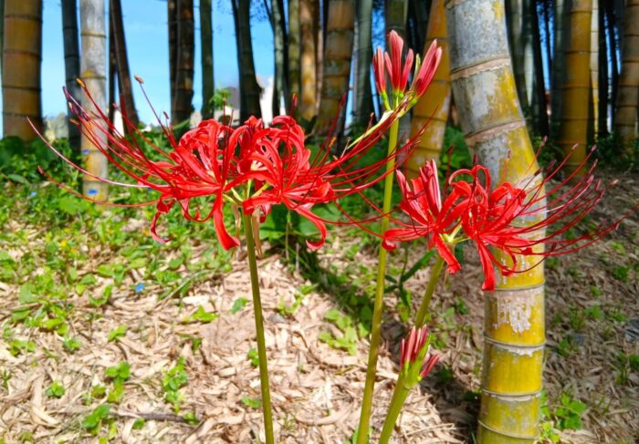秋のお彼岸にあわせて 美術館の竹林にも咲いています。赤が鮮やか。